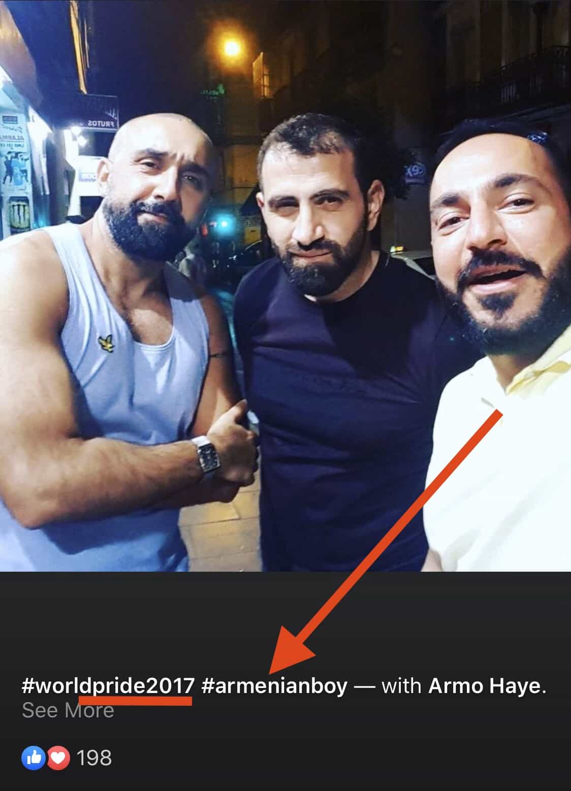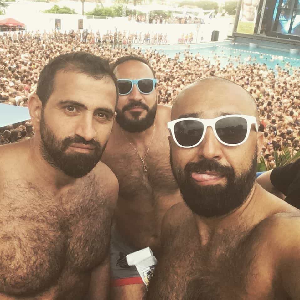 Լուսանկարներից մեկում երևում է, թե ինչպես է լողավազանը խիտ լցված միայն տղամարդկանցով: Ադրբեջանցի դիջեյը նկարներում նշում է նաև այն գեյ-շքերթները, որոնց մասնակցում են: