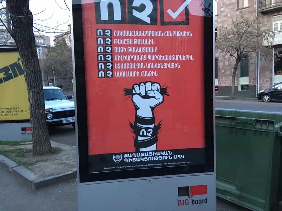 Սահմանադրական փոփոխությունների հանրաքվեի «ՈՉ» քարոզչական կողմը հայտարարություն է տարածել «ԱՅՈ» քարոզչական կողմի խախտումների վերաբերյալ, որը ներկայացնում ենք ստորև.
