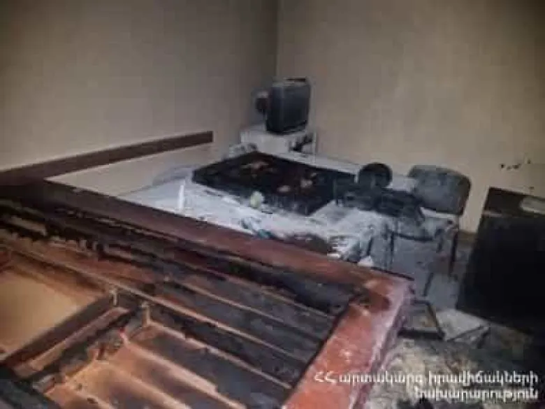 Մասամբ այրվել են աշխատասենյակի (20 քմ) գույքը (գրասեղան, պահարան, համակարգիչ, տպիչ, հեռախոս), շերտավոր վարագույր, մանրահատակ եւ ջերմահարվել՝ մեկ պատուհան: