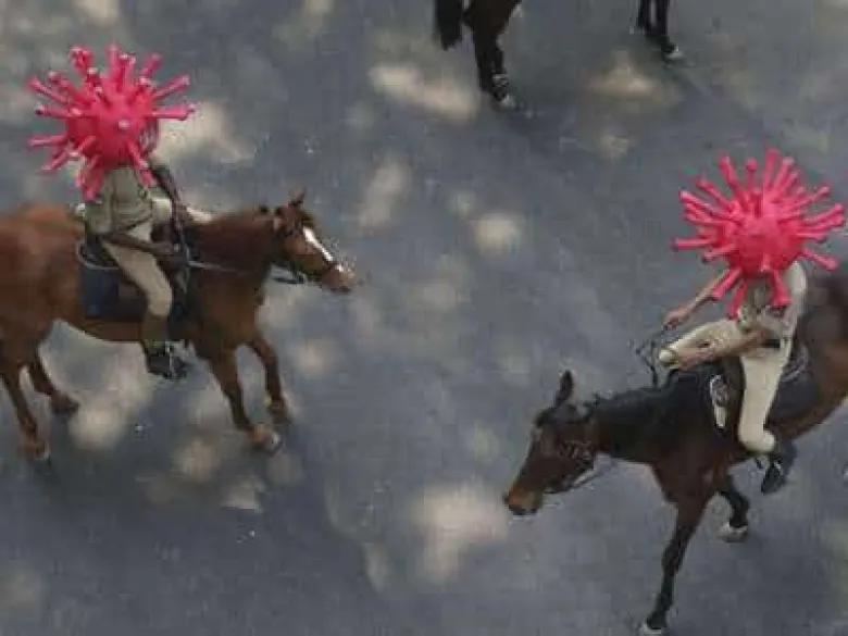 Հնդկաստանում COVID-19-ի մասին իրազեկվածությունը բարձրացնելու համար ոստիկանները կորոնավիրուսի տեսքով սաղավարտներ են կրել, հաղորդում է FoxNews-ը: