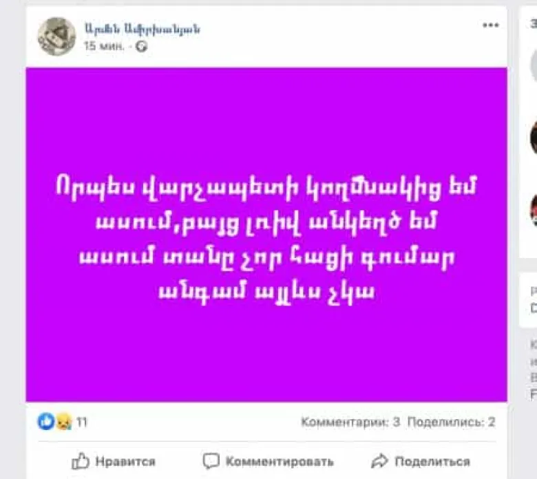 Իմ «հեղափոխական բարեկամ», ուզու՞մ ես լսել իրականությունը, ուզու՞մ ես իմանալ երբ ես լավ ապրելու... ԻՐԱԿԱՆՈւՄ ՄԻՆՉԵՎ ՌՈԲԵՐՏ ՔՈՉԱՐՅԱՆԸ ԱԶԱՏՈւԹՅԱՆ ՄԵՋ ՉԼԻՆԻ՝ ԴՈւ ՔՈ ՊԱՐՏՔԵՐԸ ՉԵՍ ԿԱՐՈՂԱՆԱԼՈւ ՓԱԿԵՍ, սառնարանդ չի լցվելու, աշխատանք չես ունենալու, գազի գինը չի էժանանալու, Ռուսաստանում արտագնա աշխատանքից նորմալ փող չես բերելու, երեխադ ուսում չի ստանալու, տրանսվեստիտներն էլ այս երկիրը չեն լքելու։ ԴՈւ ՀԱՅ ՉԵՍ ԼԻՆԵԼՈւ։