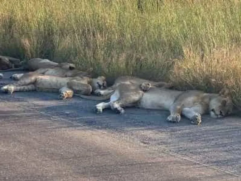 Օգտվելով մարդկանց բացակայությունից՝ առյուծները քնել են ճանապարհին
