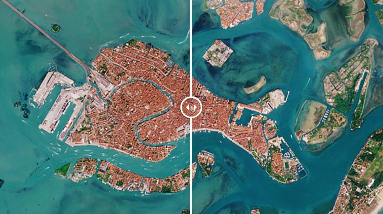 Եվրոպական տիեզերական գործակալությունը երկու լուսանկար է հրապարակել, որոնք պատկերում են իտալական Վենետիկ քաղաքի տեսքը տարբեր ժամանակներում: