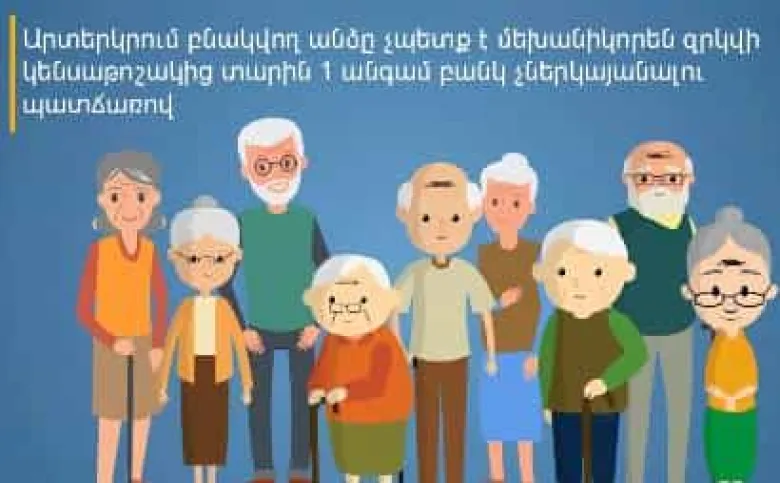 Հարցն այն է, որ գործող օրենքով՝ կենսաթոշակի վճարումը շարունակելու համար կենսաթոշակառուն պարտավոր է տարեկան առնվազն 1 անգամ, վերջին անգամ բանկ ներկայանալու (կենսաթոշակն անկանխիկ եղանակով ստանալու համար դիմելու) ամսվան հաջորդող 12-րդ ամսվա վերջին աշխատանքային օրվանից ոչ ուշ, ներկայանալ բանկ եւ հայտարարություն ստորագրել Հայաստանի Հանրապետությունում լինելու մասին: Օրենքը հնարավորություն է ընդձեռում, որ կենսաթոշակը նաեւ վճարվում է կենսաթոշակառուի տված եւ նոտարի վավերացրած լիազորագրով, սակայն կենսաթոշակը լիազորագրով անընդմեջ կարող է վճարվել 12 ամսից ոչ ավելի ժամանակահատվածում։