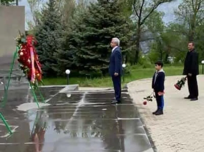 «ՀՀ երրորդ նախագահ Սերժ Սարգսյանը մայիսյան եռատոնի` Հայրենական մեծ պատերազմում հաղթանակի, Արցախի պաշտպանության բանակի կազմավորման և Շուշիի ազատագրման օրվա առթիվ թոռնիկի հետ այսօր այցելել է «Եռաբլուր» զինվորական պանթեոն` հարգանքի և երախտագիտության տուրք մատուցել հայրենիքի անկախության համար կյանքը զոհաբերած իր մարտական ընկերների և հայրենիքի նվիրյալ բոլոր հայորդիների հիշատակին: