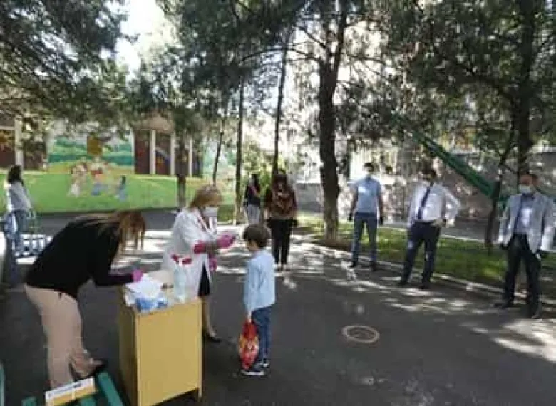 Ծնողները երեխաներին ուղեկցում են մինչեւ մանկապարտեզի մուտքը: Այստեղ բույժքույրերն ու դաստիարակները նախ հեռահար ջերմաչափերով ստուգում են երեխաների մարմնի ջերմաստիճանը, տվյալները գրանցում մատյաններում, որից հետո՝ ախտահանում երեխաների կոշիկներն ու առանձին-առանձին ուղեկցում ներս: