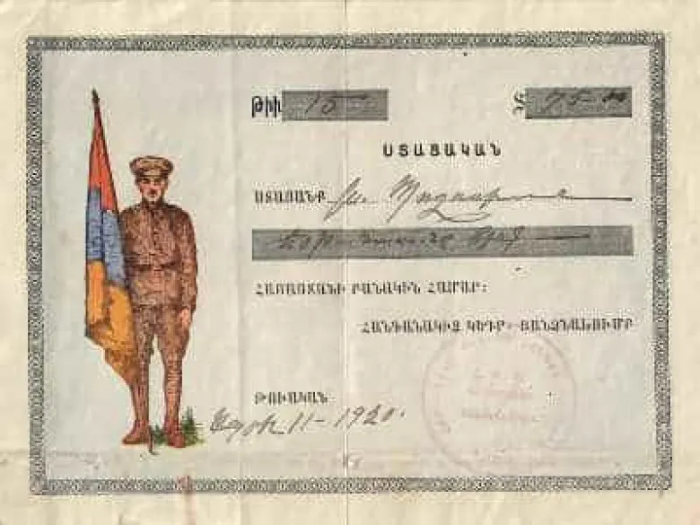 Հարյուր տարի առաջ բանակին արված նվիրատվության ստացական