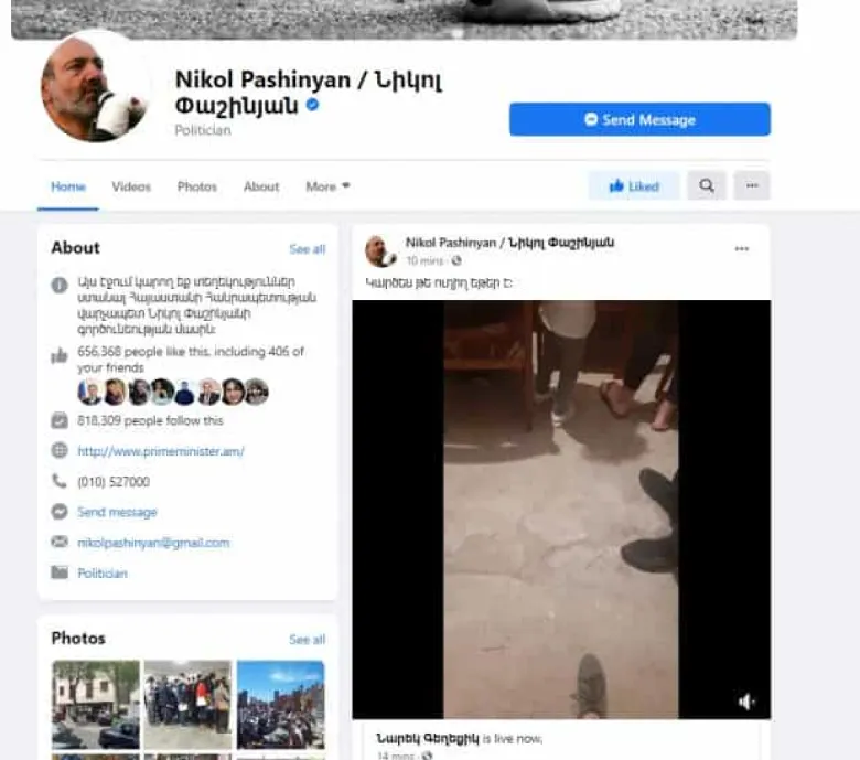 Ինչեւէ մի քան րոպե եթերը հեռարձակելուց հետո վարչապետն այդ գրառումն ու ուղիղ եթերը հեռացրեց ֆեյսբուքյան իր էջից։
