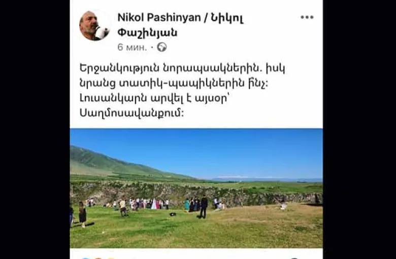 այսօր ՀՀ Վարչապետ տիար Նիկոլ Փաշինյանի ֆեյսբուքյան էջում հայտնվեց մի լուսանկար, որում ցուցադրված էր իբրև թե այսօր Սաղմոսավանքում տեղի ունեցած հարսանիքից մեկ դրվագ է։
