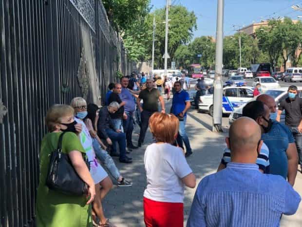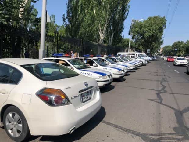 ԱԺ-ի դիմաց ոստիկանական ուժեր են տեղակայված, մեծ թվով ոստիկանական մեքենաներ, այդ թվում՝ ջրցան մեքենաներ։