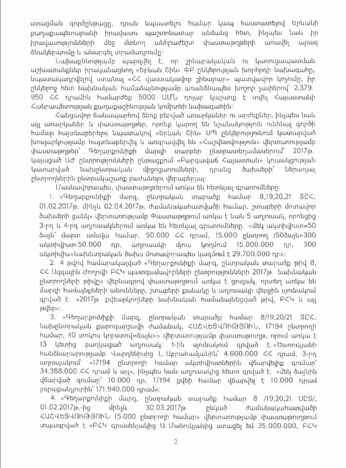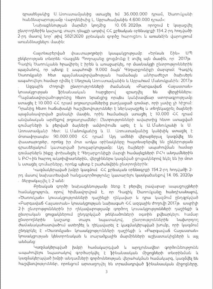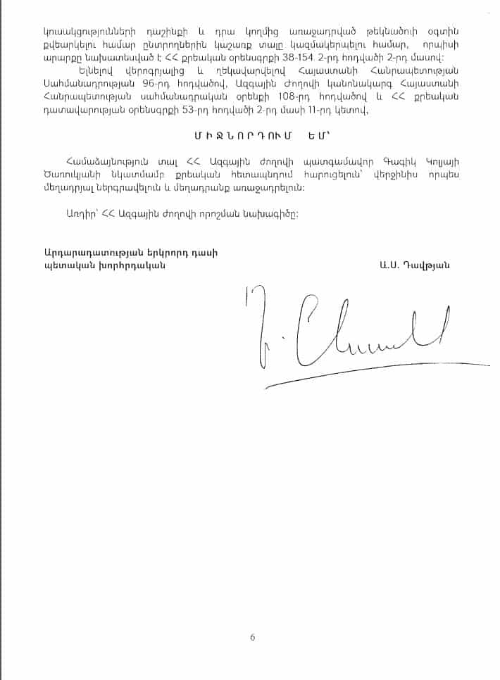 Արթուր Դավթյանը ներկայացրեց Գագիկ Ծառուկյանի նկատմամբ քրեական հետապնդում հարուցելու միջնորդագիրը