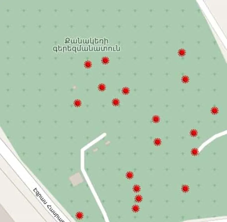 ըստ նախարար Արսեն Թորոսյանի տրամադրած քարտեզի, ձեր գերեզմանատանը ինքնամեկուսացված է կորոնավիրուսի մոտ 2 տասնյակ վարակակիր։