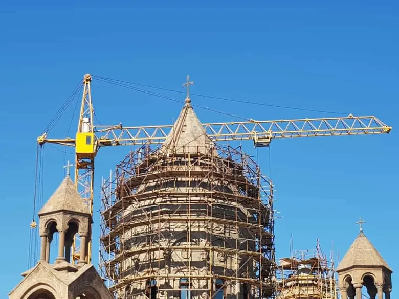 Հաղթության նշան. Վար են բերվում Մայր Տաճարի գմբեթը կաղապարող շինկապանքները