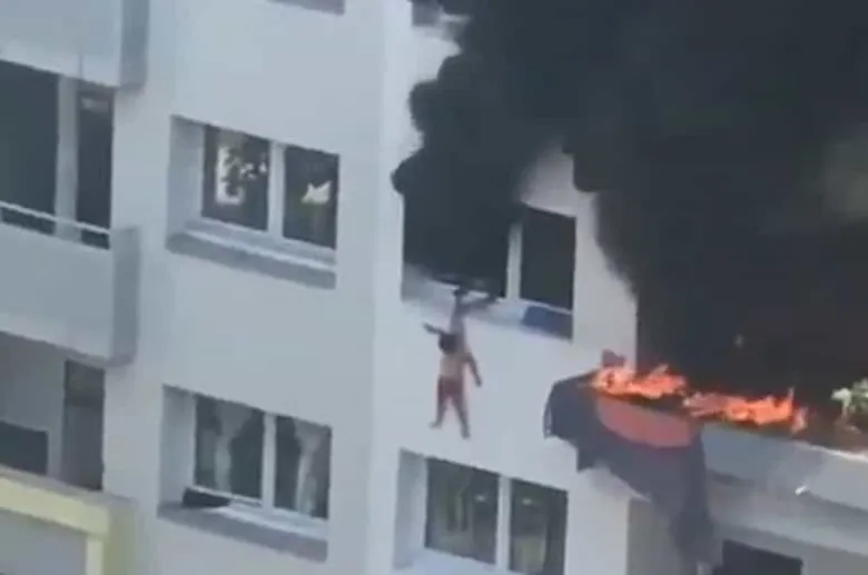 Համացանցում հայտնված տեսանյութում երևում է՝ ինչպես է ավագը կրտսեր եղբորը ցած նետում մինչ կրակի լեզուները «կուլ են տալիս» պատշգամբը: Ներքևում կանգնածների բղավոցների ներքո րոպեներ անց ցատկում է նաև ավագ եղբայրը: