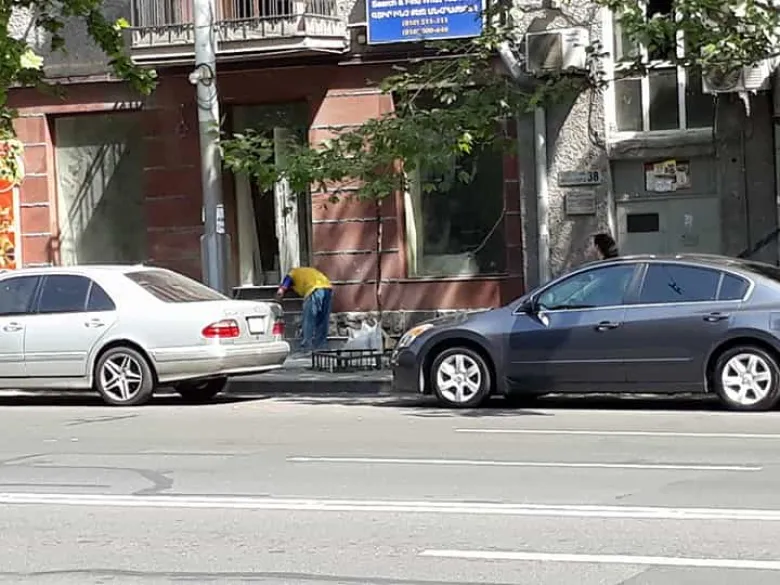 Անցորդներից մեկը դիտողություն է անում, առաջարկելով գոնե կտոր քաշել, որ փոշին չտարածվի: «Դուրդ չի գալիս, անցի մյուս մայթով քայլի»,- կոպիտ ասում է բանվորը եւ քթի տակ փնթփնթում: Մեկ այլ անցորդ առաջարկում է դադարեցնել աշխատանքները, բանվորը նրան պարզապես վիրավորում է՝ անխելք, դու պիտի ասես ես ինչ անեմ: