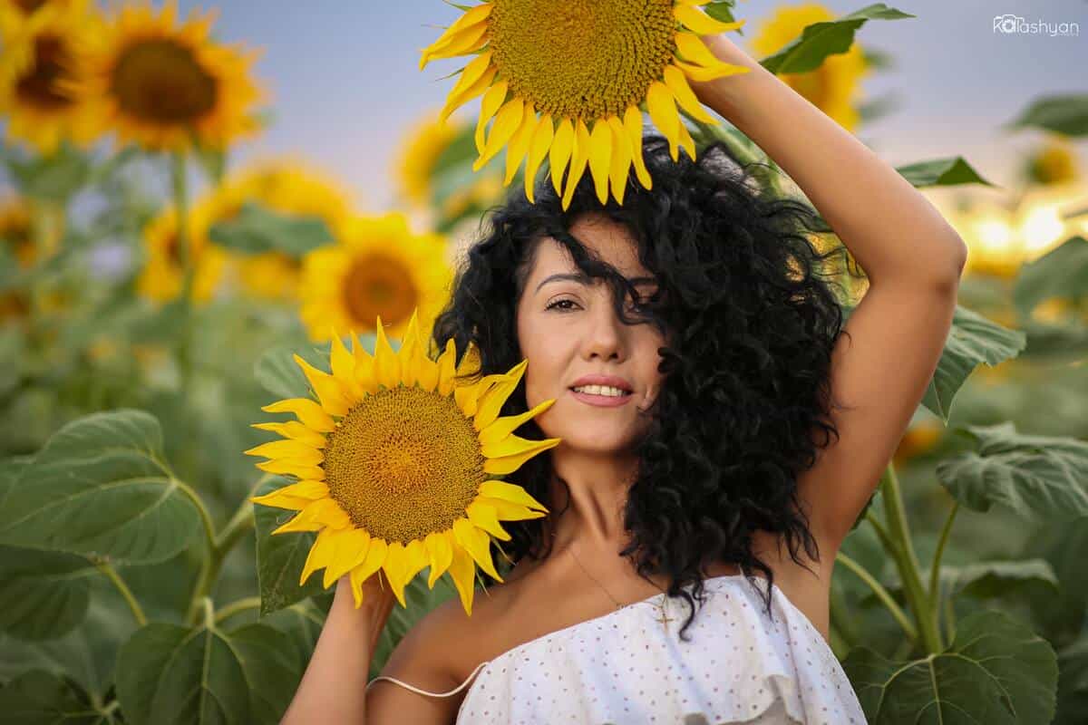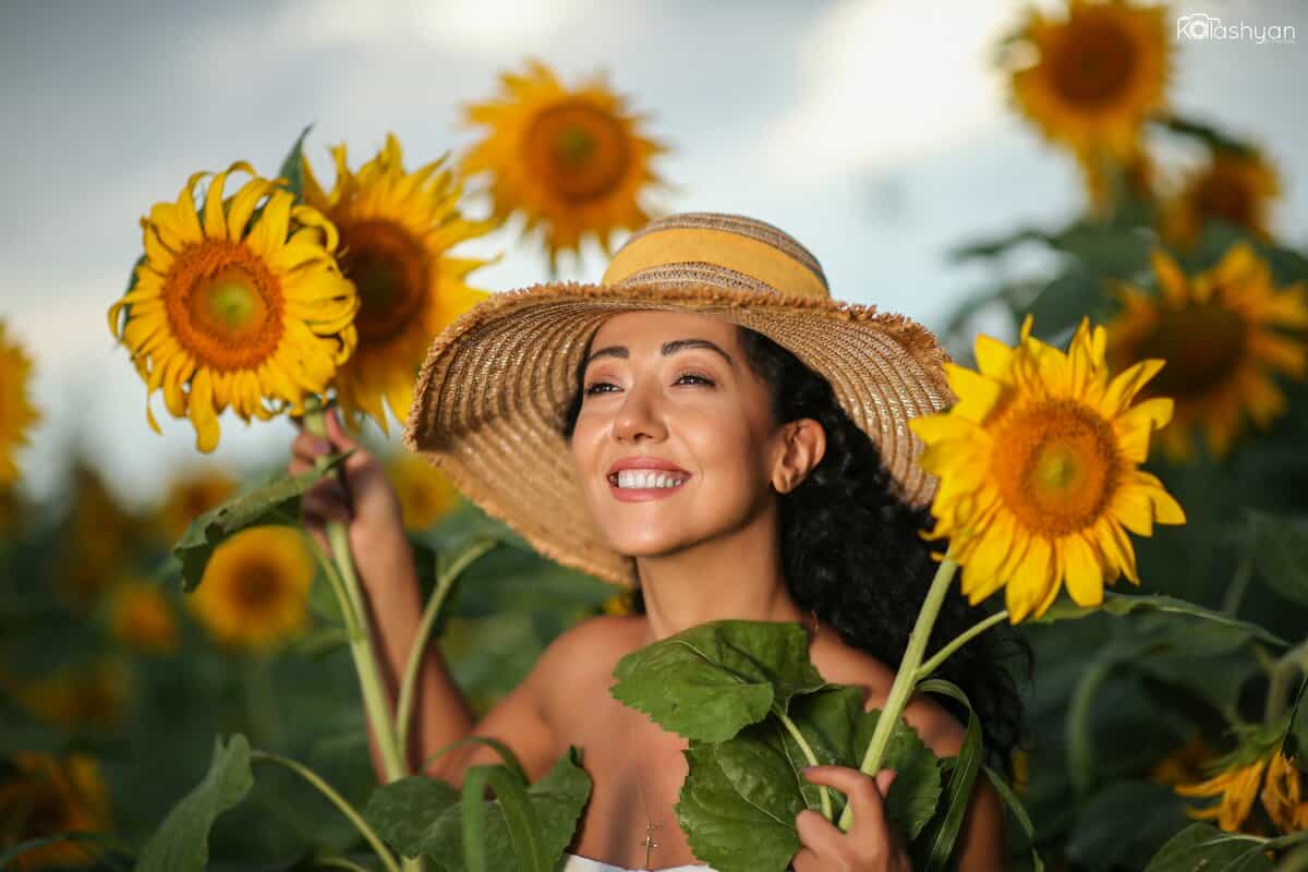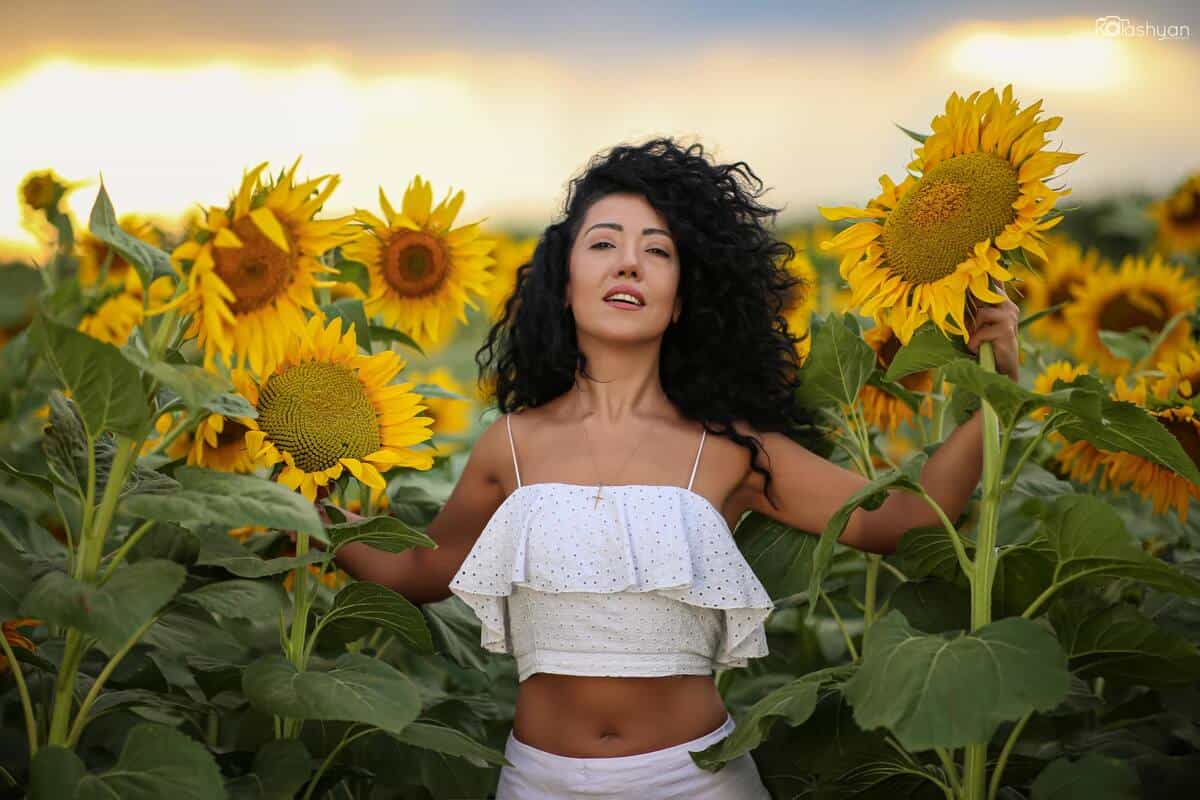 Նոր լուսանկարների հեղինակը Հակոբ Քալաշյանն է. «Ուզում էի երիցուկների հետ նկարվել, բայց չհասցրի, թոշնեցին: Հակոբն ասաց, որ չտխրեմ ու որ կարող եմ արևածաղիկների հետ լուսանկարվել: Գնացինք դաշտեր ու մոտ երկու ժամում ավարտեցինք լուսանկարահանումը: Այնքան հետաքրքիր եղանակ էր` արևոտ էր, բայց անձրև էր գալիս: Ափսոս, որ լուսանկարներում դա չի երևում»: