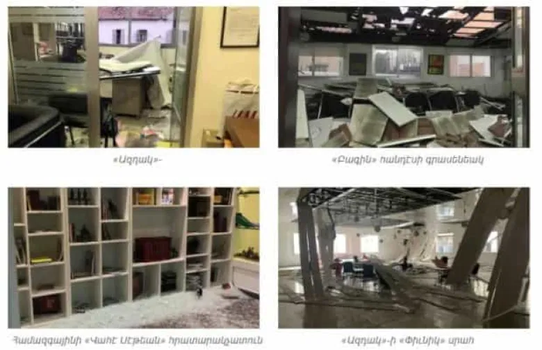 Նյութական վնաս են կրել «Ազդակ»-ի խմբագրությունը, «Վանայ Ձայն»-ի, Համազգայինի «Վահէ Սէթեան» տպարանը, Համազգայինի «Լլուսի Թութունջյան» ցուցասրահը, Համազգային Կենտրոնական վարչության եւ «Բագին»-ի գրասենեակները: