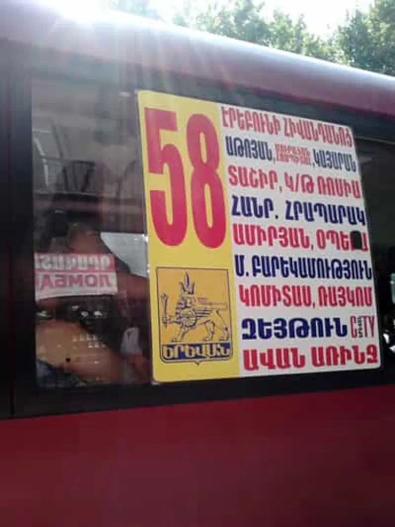 Երեւան: Շաբաթ՝ հուլիսի 8, ժամը 11.20: «Տաշիր» հանրախանութի կանգառում հայտնվում են 58 համարի միանգամից երկու ավտոբուս: Ընդ որում, սկզբում որեւէ մեկը կանգնելու ցանկություն չուներ, հետո կանգնեցին երկուսն էլ, բայց դռները բացեց փոքր ինչ ետ մնացածը: Նստեցինք: