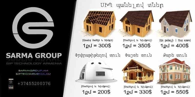 «Սարմա Գրուպը» Հայաստանում SIP պանելներով կառուցապատմամբ զբաղվող առաջատար ընկերություն է։ Այս ընկերության առավելությունն այն է, որ ունի SIP պանելների սեփական արտադրություն և առաջարկում է բարձր երաշխիք ունեցող НГ (Не Горющий) 3 SIP պանելներ, որոնք համապատասխանում են բնակելի տների համար նախատեսված միջազգային չափանիշներին։