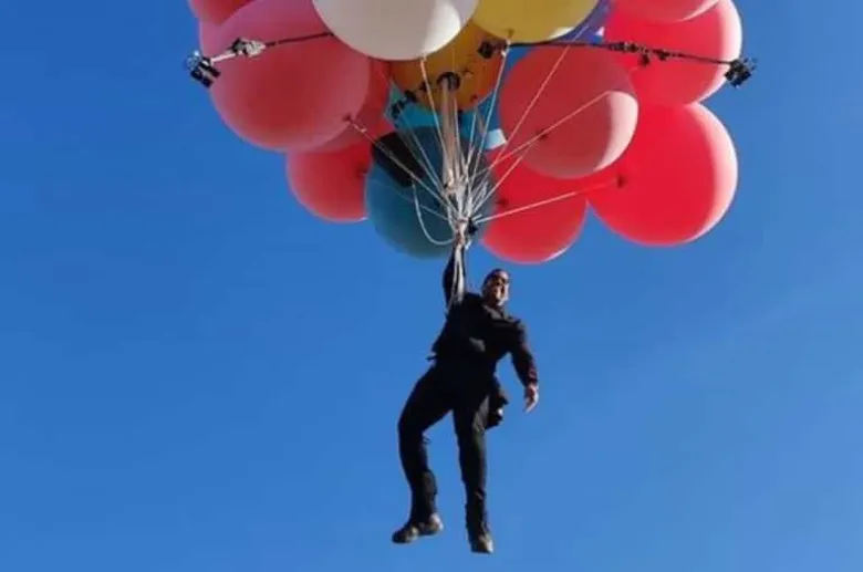 Տեսանյութում ասվում է, որ 47-ամյա շոումենը մոտ 7․5 կիլոմետր բարձրանալու համար օգտագործել է հելիումով լցված 50 հսկայական փուչիկ։ Նշվում է, որ նա երկնքում մոտ մեկ ժամ անցկացնելուց հետո ցած է իջել օդապարիկի միջոցով։