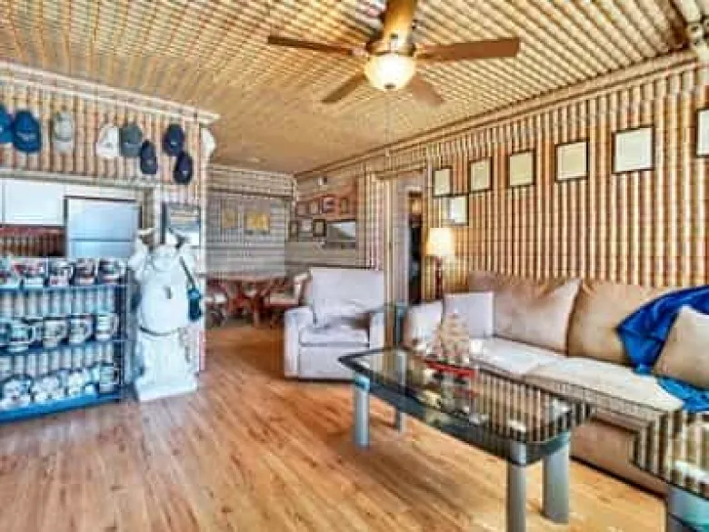 Բնակարանը նաեւ զարդարված է Anheuser-Busch գարեջրագործական ընկերության հուշանվերային արտադրանքով՝ բեյսբոլկաներով, դեկորատիվ ափսեներով եւ գարեջրի գավաթներով։ Հանդիպում են նաեւ վինտաժային իրեր, օրինակ՝ պատերից մեկին կախված է ԱՄՆ նախկին նախագահ Ջոն Քենեդու դիմանկարը։ Ներկայումս լոտի համար գնորդ են փնտրում։ Այս կացարանի համար շուկայական տեսակետից միանգամայն համեստ գումար են խնդրում՝ 100 հազար դոլար։