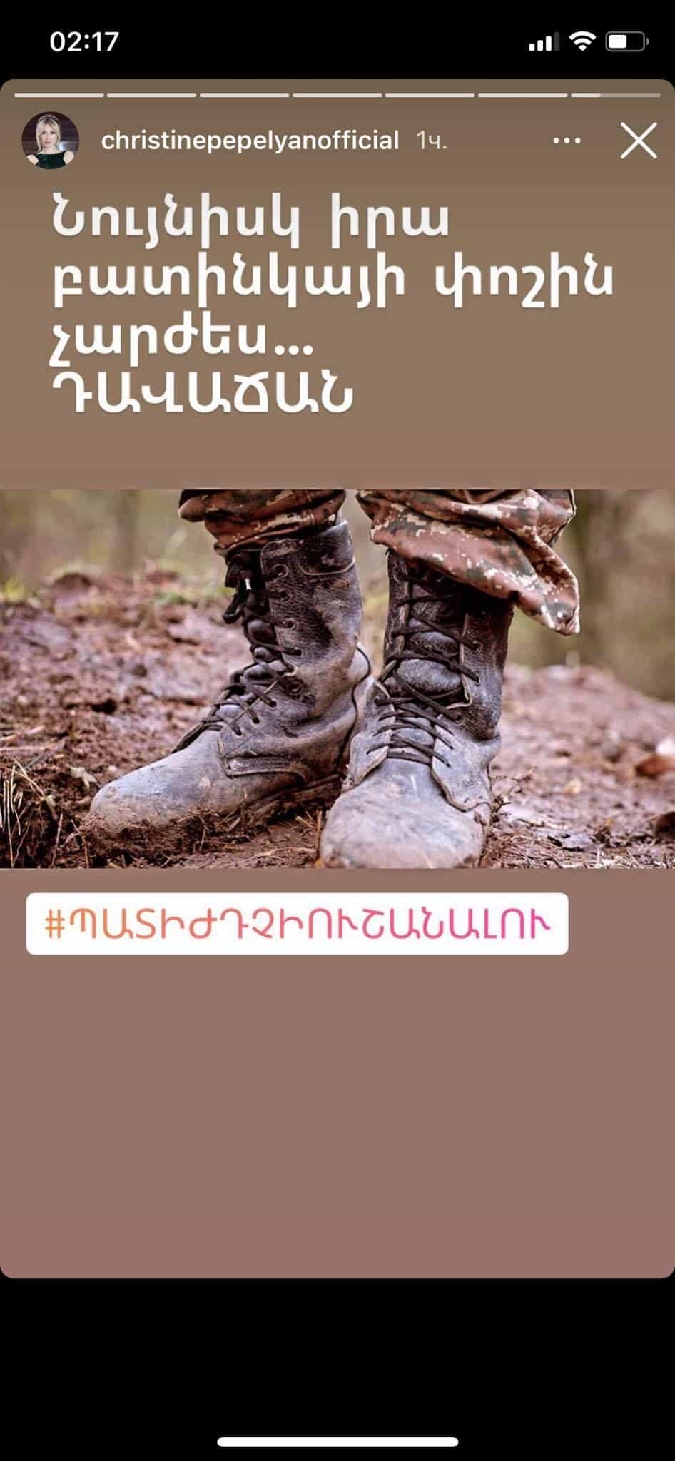 Նույնիսկ զինվորի բատինկայի փոշին չարժես, դավաճան. Քրիստինե Պեպելյան