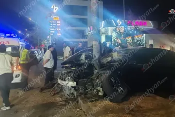 Երևանում «BMW»-ն բախվել է բազալտե եզրաքարին, ապա՝ էլեկտրասյանը. վարորդը տեղափոխվ...