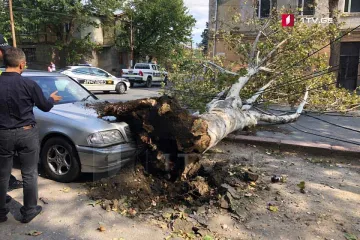 Թբիլիսիում փոթորիկի հետևանքով տասնյակ շենքերի տանիքներ են պոկվել, ծառեր արմատախի...