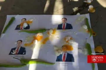 Ձվերով ու ծիծակներով ակցիա՝ իմքայլական պատգամավոր Սիսակ Գաբրիելյանի տան մոտ. (տե...