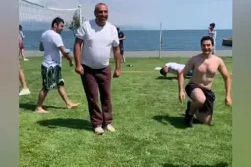Սամվել Ալեքսանյանը վոլեյբոլ է խաղում Սեւանում (տեսանյութ)