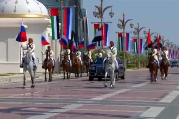 Պուտինի ավտոշարասյունը ուղեկցել են հեծյալ պահակախմբով (տեսանյութ)