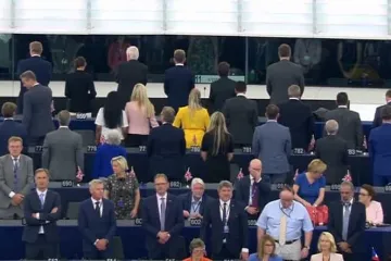 Եվրոպական խորհրդարանի առաջին նիստին ԵՄ օրհներգի ժամանակ Բրեքսիթի կուսակցության ա...