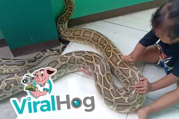 Երեքամյա աղջիկը խաղում է հսկայական պիթոնի հետ