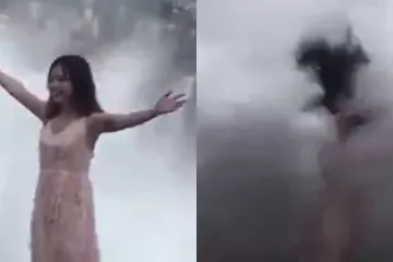 Ինչպես է Բալիում ուժգին ալիքը հարվածում կին զբոսաշրջիկին (Տեսանյութ)