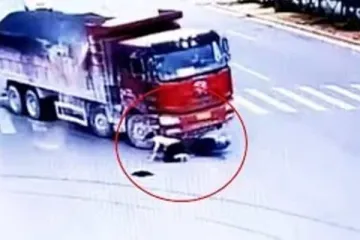 Չինաստանում մոտոռոլերի վարորդը վայրկյանների ընթացքում ընկել է երկու բեռնատարի տա...