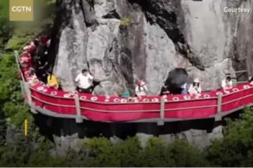 Չինաստանում ժայռից «կախված» ռեստորան է բացվել (տեսանյութ)