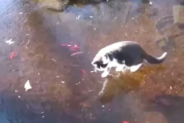 Ինչպես էր կատուն ձուկ բռնում սառած ջրում (Տեսանյութ)