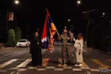 Ստեփանակերտում ջահերով երթն առաջնորդել են հոգևորականը, հղի կինը` երեխան գրկին և ...