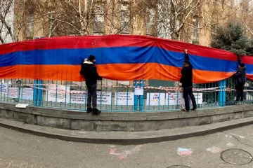 Արցախի Հանրապետության 22 մետրանոց դրոշը՝ ՄԱԿ-ի հայաստանյան գրասենյակի ցանկապատին