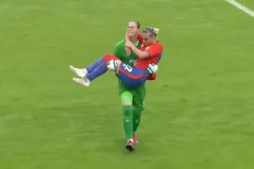 Կին ֆուտբոլիստը ձեռքերի վրա դաշտից դուրս է բերել վնասվածք ստացած խաղընկերուհուն ...