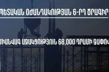 Պետական օժանդակության 6-րդ ծրագրով քաղաքացիներին կտրվի 68․000 դրամ միանվագ օժանդակություն