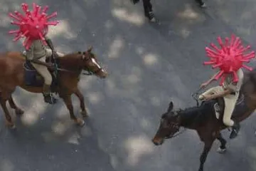 Հնդկաստանում ոստիկանները կորոնավիրուսի տեսքով սաղավարտներ են կրել (լուսանկարներ)