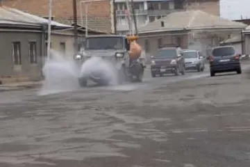 Էջմիածնում քլորաջրով մաքրվում են թաղամասերը, փողոցներն ու մայթերը