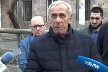 Դաժան ծեծի ենթարկված փոխգնդապետ Արա Մխիթարյանի հայրը բողոքի ակցիան Մուրացան հոսպիտալի դիմաց (տեսանյութ)