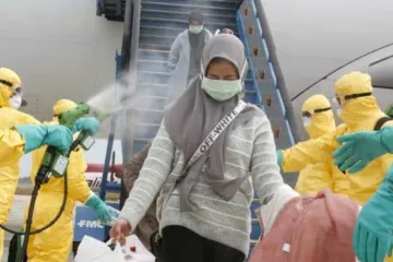 Ինչպես են հատուկ հեղուկով ցողում չինական Ուհանից Ինդոնեզիա ժամանած ուղևորներին (տեսանյութ)