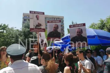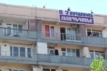 Օրվա կադր․ պաստառ Վերաքննիչ դատարանի դիմացի շենքի տանիքին՝ «Ո՛չ քաղաքական հետապնդմանը»
