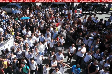 Արմավիրի թիվ 5 դպրոցի աշակերտները, ծնողներն ու ուսուցիչները բողոքի ակցիա է անում մարզպետարանի դիմաց