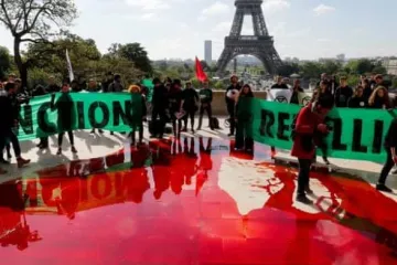 Փարիզում էկոակտիվիստները 300 լիտր «արյուն» են լցրել հրապարակում