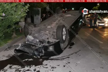ՊԵԿ-ի աշխատակցին սպասարկող մեքենան Երևանում գլխիվայր շրջվել է. վարորդը հոսպիտալացվել է