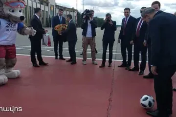 Նիկոլ Փաշինյանն օդանավակայանում ֆուտբոլ է խաղացել Աշխարհի գավաթի խորհրդանիշ «Զաբիվակա» գայլի հետ (Տեսանյութ, լուսանկարներ)